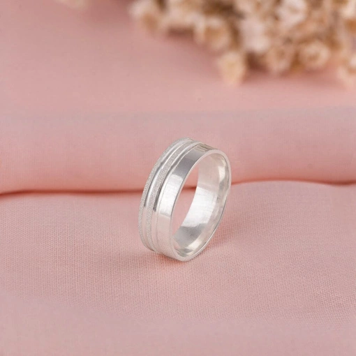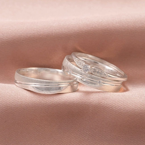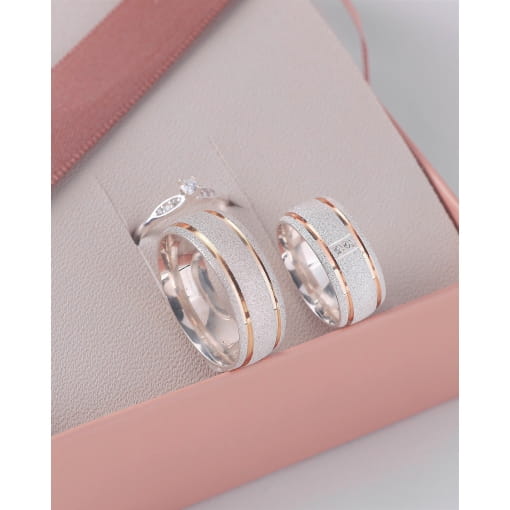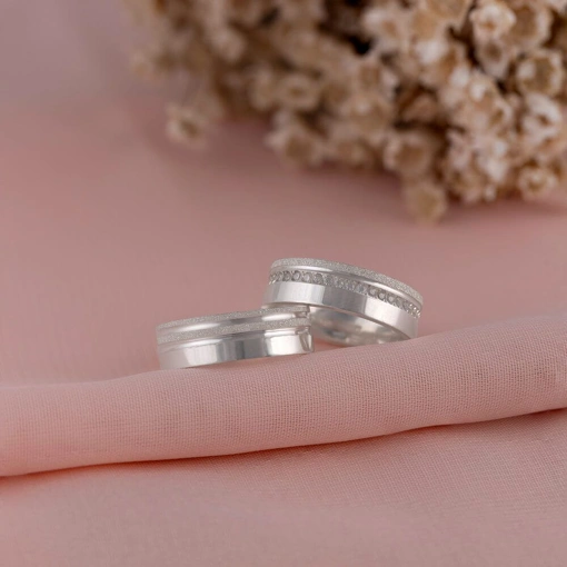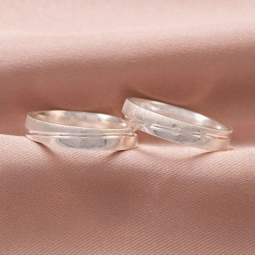 Par De Alianças Prata 925 Reta Com Friso Fosco 5MM