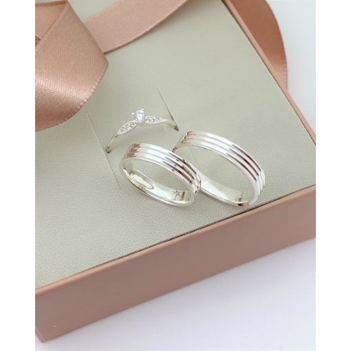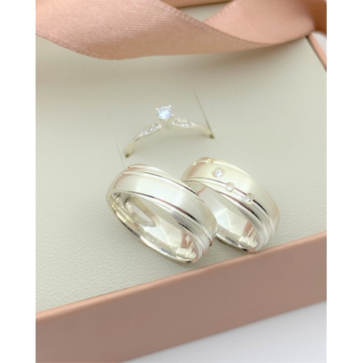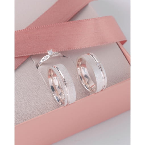 Par De Alianças Prata 925 Com Zircônia Branca e Friso 6MM