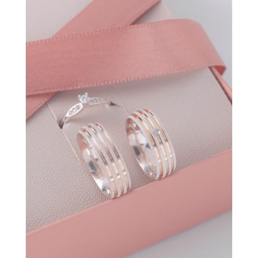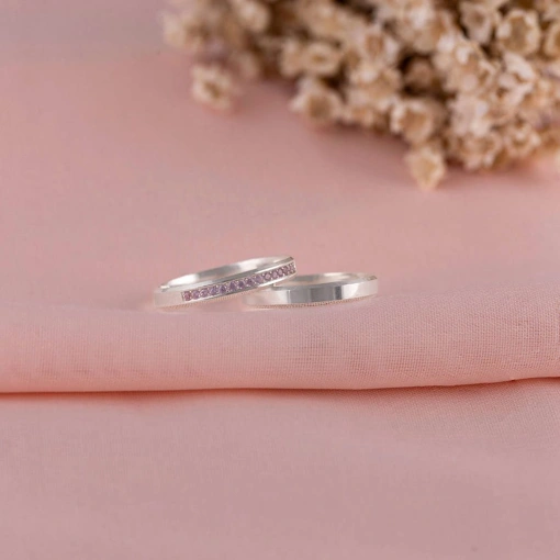 Par De Alianças Prata 925 Com Zircônia Rosa e Lisa 3MM