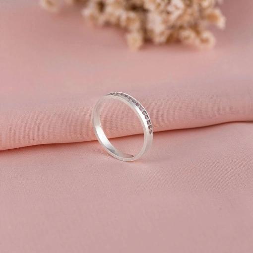 Aliança Unitária Prata 925 Com Zircônia Rosa 3MM