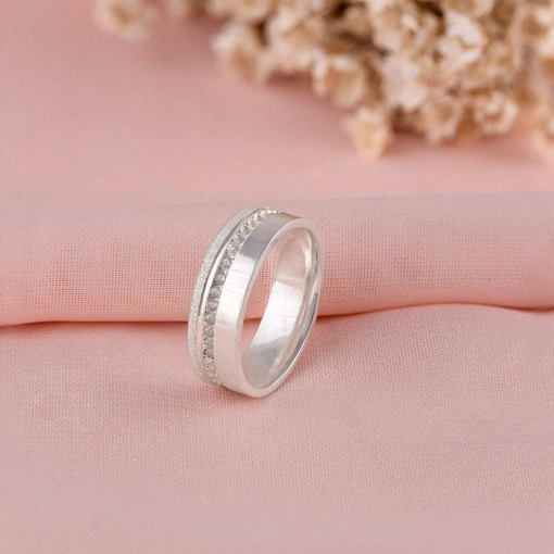 Aliança Unitária Prata 925 Com Friso Detalhe Diamantado