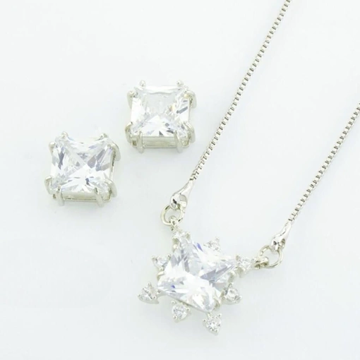 Conjunto Colar + Brinco Prata 925 Com Zircônia Branca