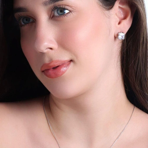 Brinco Banho de Ródio Branco Com Zircônia Quadrada Branca