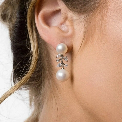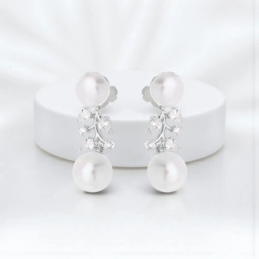 Brinco Banho De Ródio Branco Zircônias Com Pérola Barroca