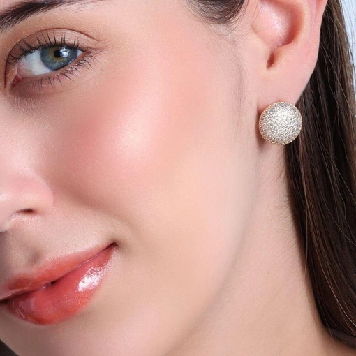 Brinco Banhado a Ouro 18K Colmeia Zircônia Branca