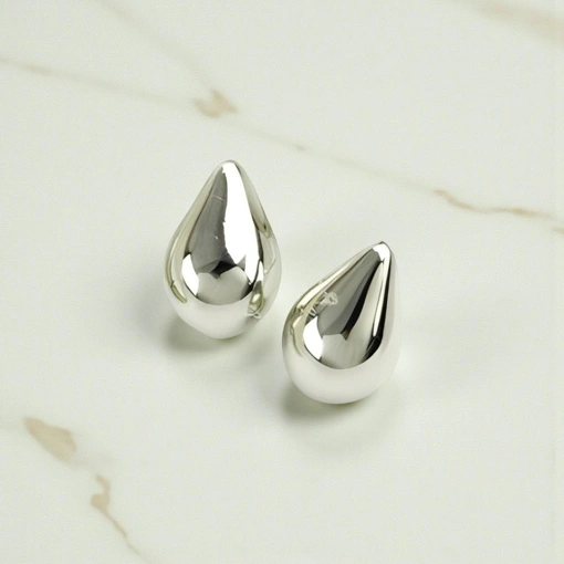 Brinco Banho De Ródio Branco Gota Zircônia Azul
