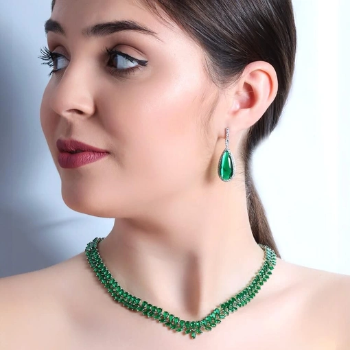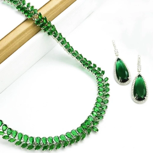 Brinco Banho De Ródio Branco Gota Zircônia Verde