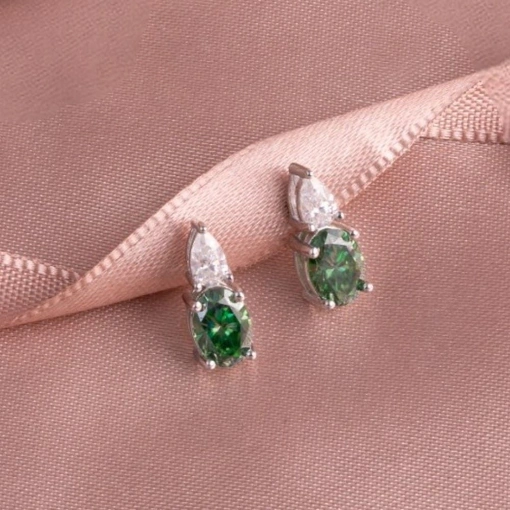 Brinco Prata 925 Com Banho De Ródio Moissanite Verde Branca