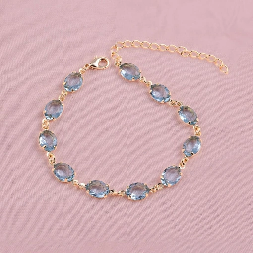 Pulseira Banhada A Ouro 18K Gota Zircônia Azul Claro