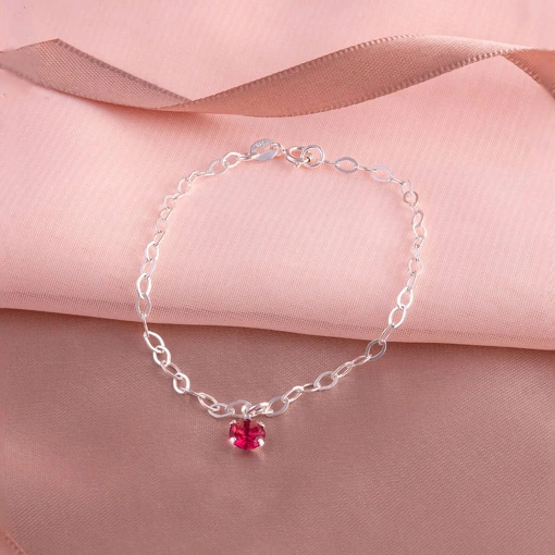 Pulseira Prata 925 Com Zircônia Rosa Escuro