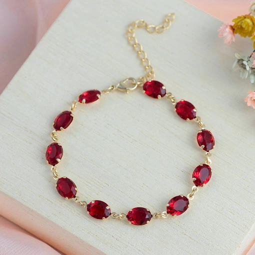 Pulseira Banhada A Ouro 18K Com Zircônias Vermelhas Ovais