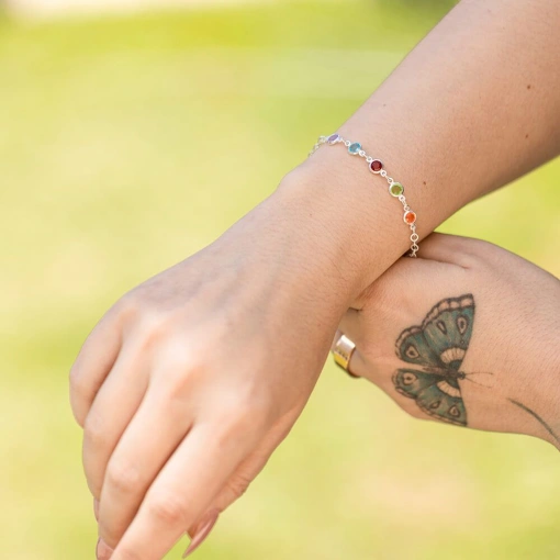 Pulseira Prata 925 Com Zircônias Coloridas