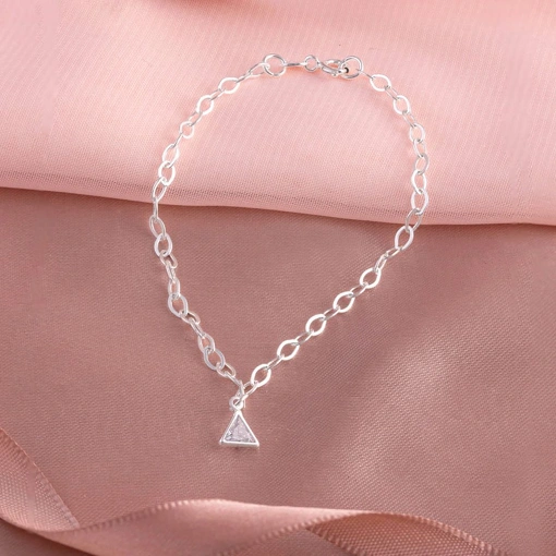 Pulseira Prata 925 Com Zircônia Branca Triangular