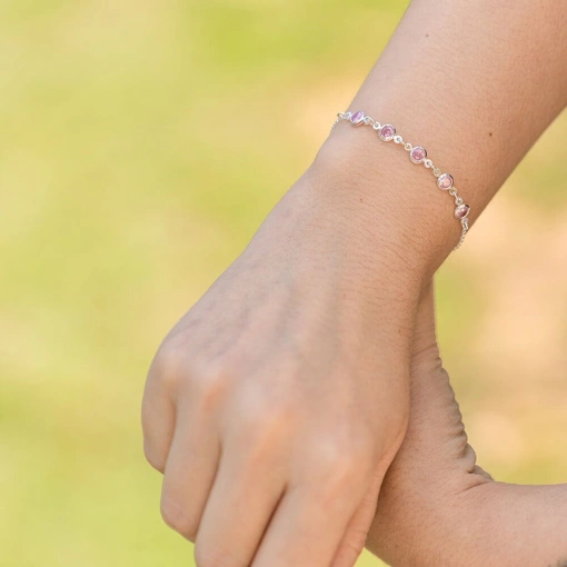 Pulseira Prata 925 Com Zircônia Rosa