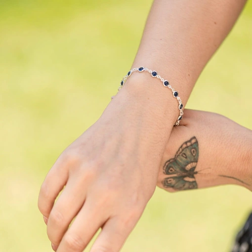 Pulseira Prata 925 Com Zircônia Azul Escuro
