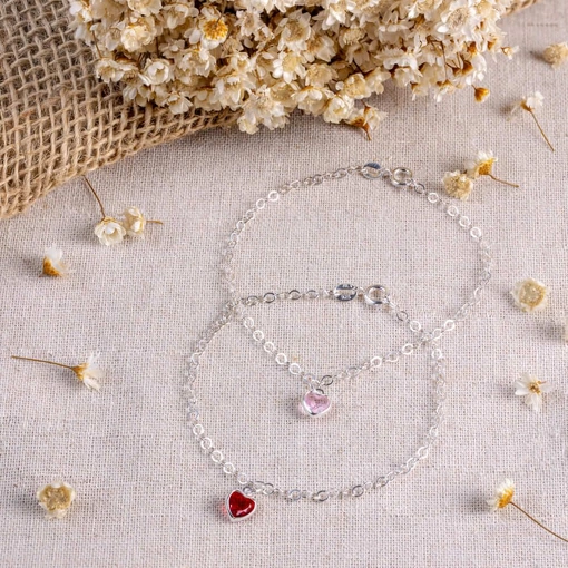 Pulseira Prata 925 Coração Zircônia Branca