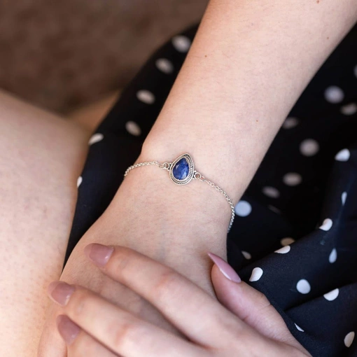 Pulseira Prata 925 Gota Quartzo Azul